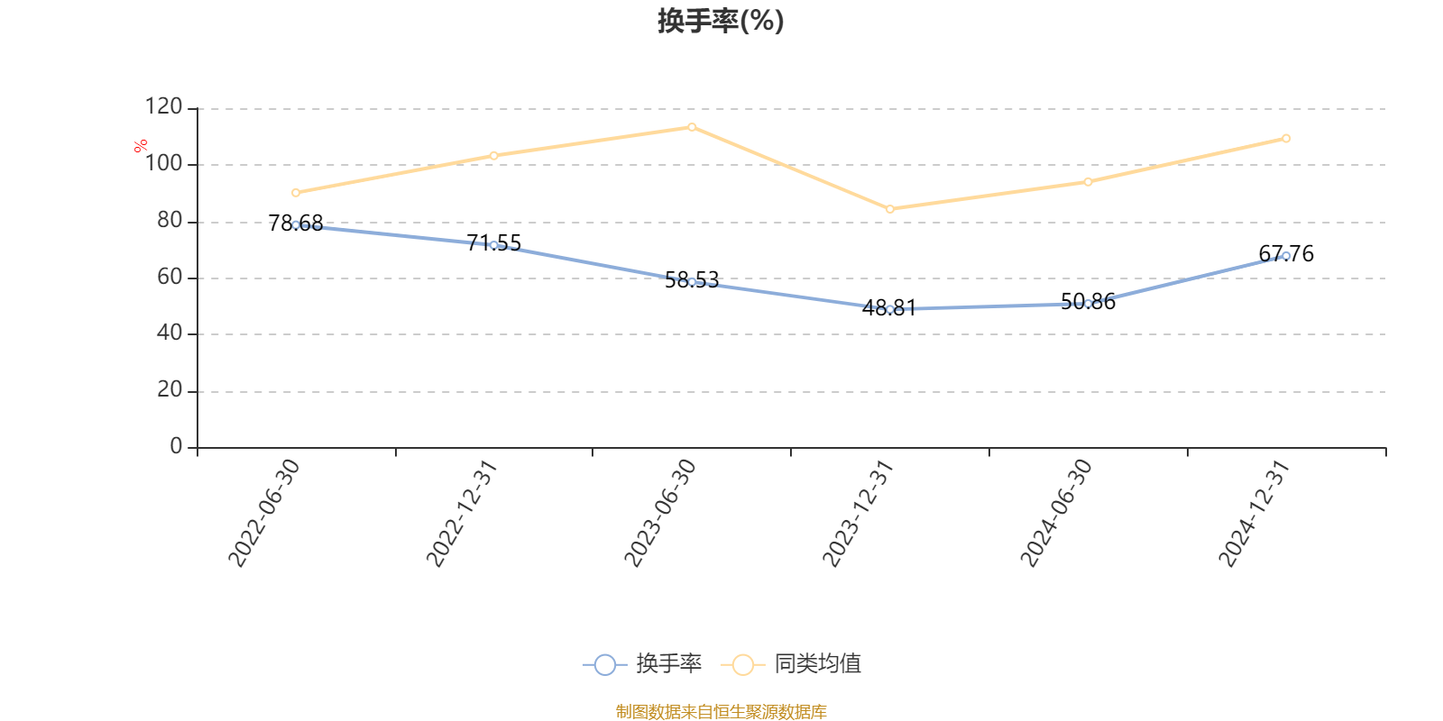 截至2024年12月31日,基金最近一年换手率约119.52%,持续低于同类均值。