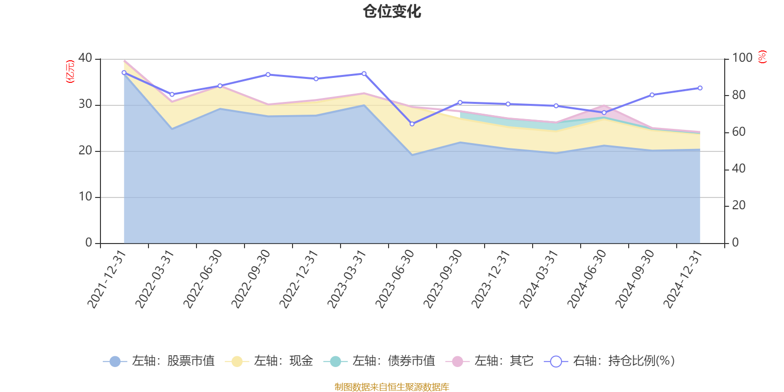 据定期报告数据统计,近三年平均股票仓位为80.43%,同类平均为85.84%。2021年末基金达到92.53%的最高仓位,2023年上半年末最低,为64.7%。