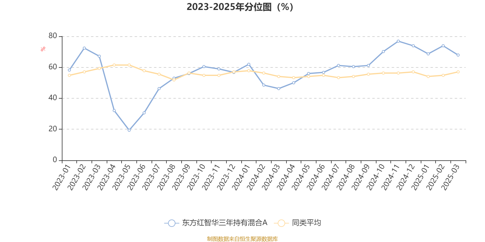 通过所选区间该基金净值增长率分位图,可以观察该基金与同类基金业绩比较情况。图为坐标原点到区间内某时点的净值增长率在同类基金中的分位数。